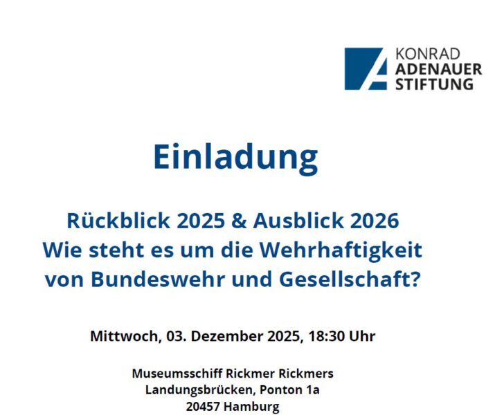Wie weit ist die Aufrüstung und der personelle Aufwuchs der Bundeswehr 2025 vorangeschritten? Welche wichtige Weichen wurden gestellt, wo fehlt es noch? Darum geht es am 3. Dezember 2025 in dieser sicherheitspolitischen Podiumsdiskussion