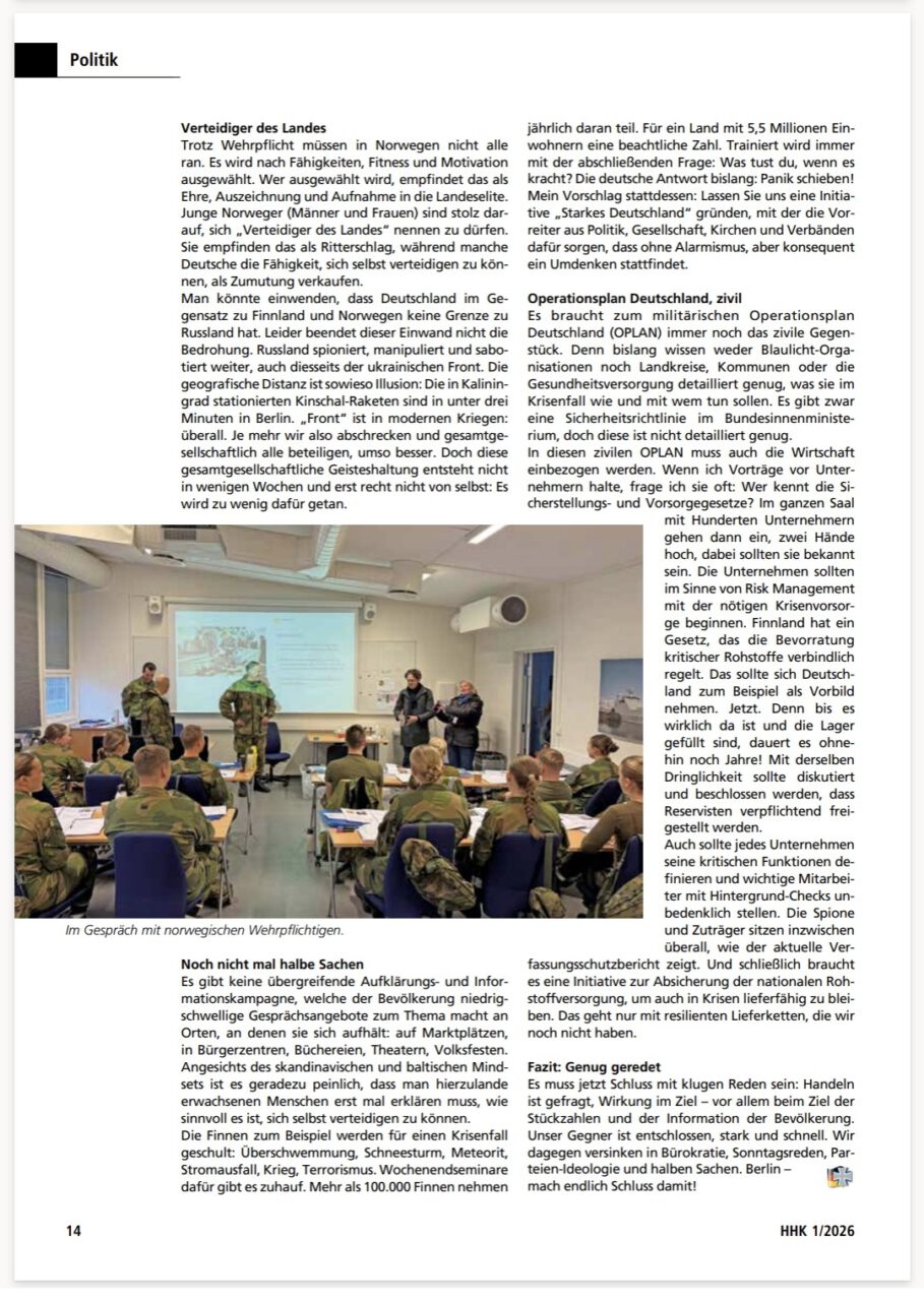 In der aktuellen Ausgabe des Hardthöhenkuriers habe ich einen neuen Artikel zur Verteidigungsfähigkeit Deutschlands und zu den bisherigen Maßnahmen bei Bundeswehr veröffentlicht.