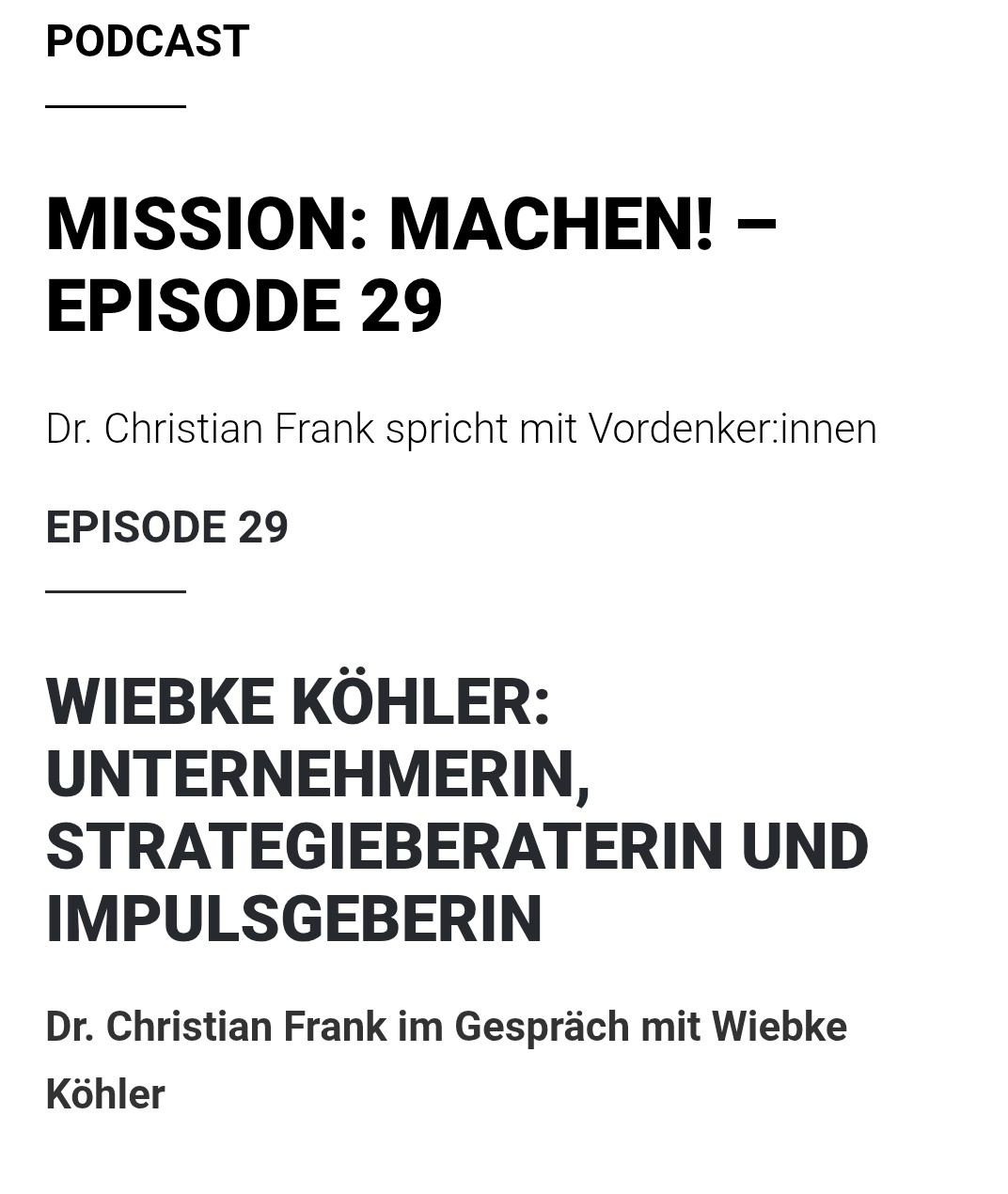 Für alle, die vom Reden ins Handeln kommen wollen. Jetzt anhören oder ansehen👉„Mission: Machen!“ Episode 29 mit Wiebke Köhler