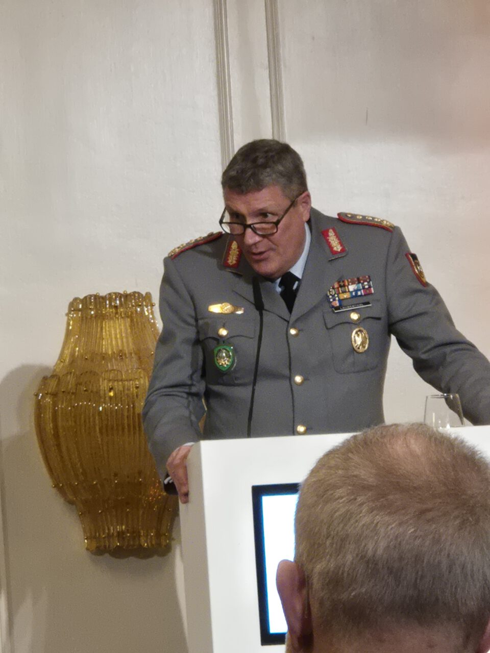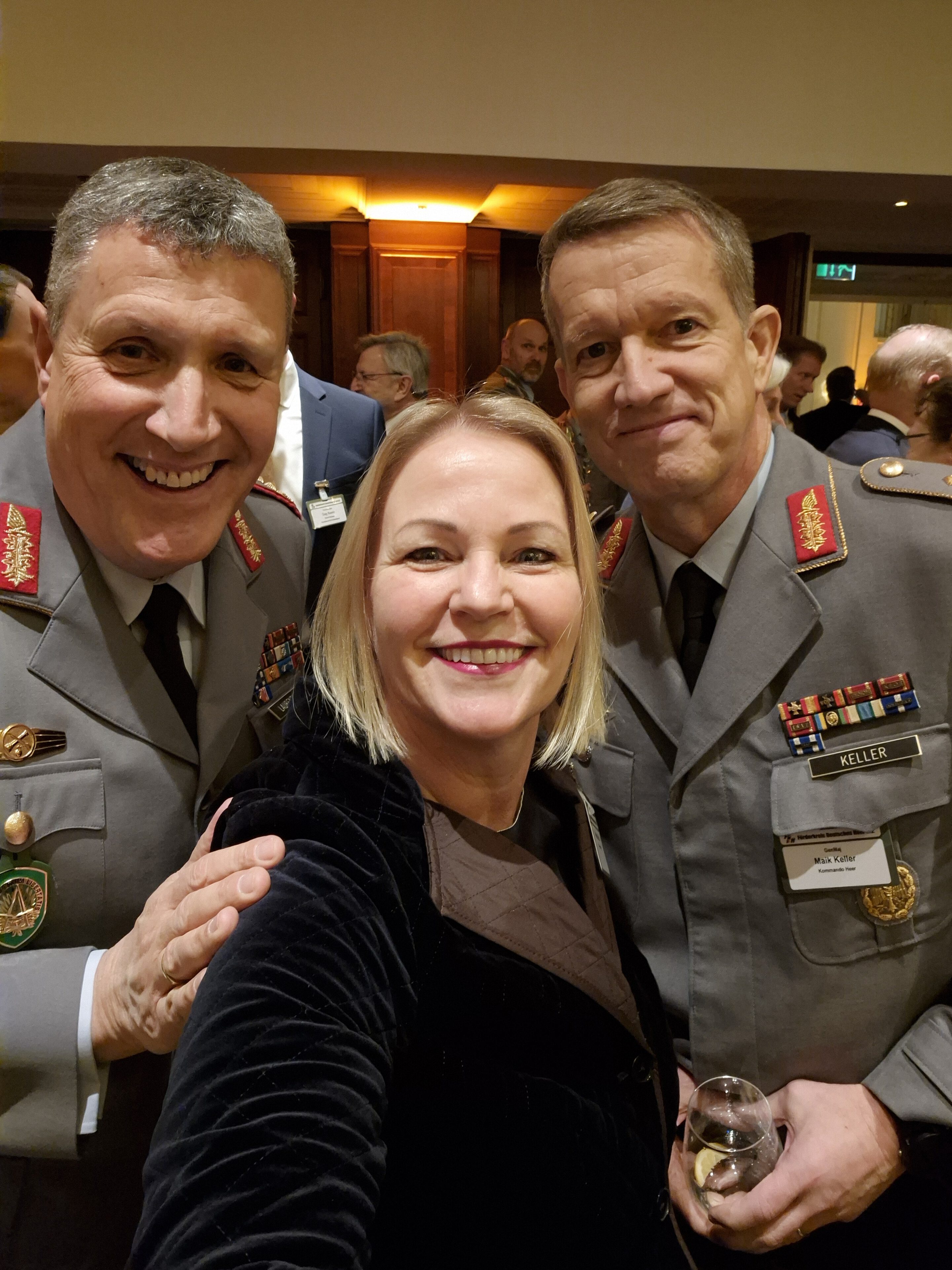 Auf die Wankelmütigkeit der US Regierung und deren Auswirkung auf die NATO angesprochen antwortete er: „The USA continues to stand with NATO“. Die Zusammenarbeit mit den US Militärs laufe reibungslos und sehr engagiert. Allerdings wäre deutlich, dass die USA eine andere Lastenverteilung von Europa fordern würde. So sollen die heutigen 56% der Last aus nicht-USA-NATO-Ländern bis 2032 auf 70% anwachsen. Er forderte Europa auf, den USA „auf Augenhöhe, aber unabhängiger und eigenständiger“ zu begegnen. Das wäre insbesondere beim Aufbau wichtiger Fähigkeiten in Cyber und Space notwendig, zur Lageaufklärung und – auswertung.