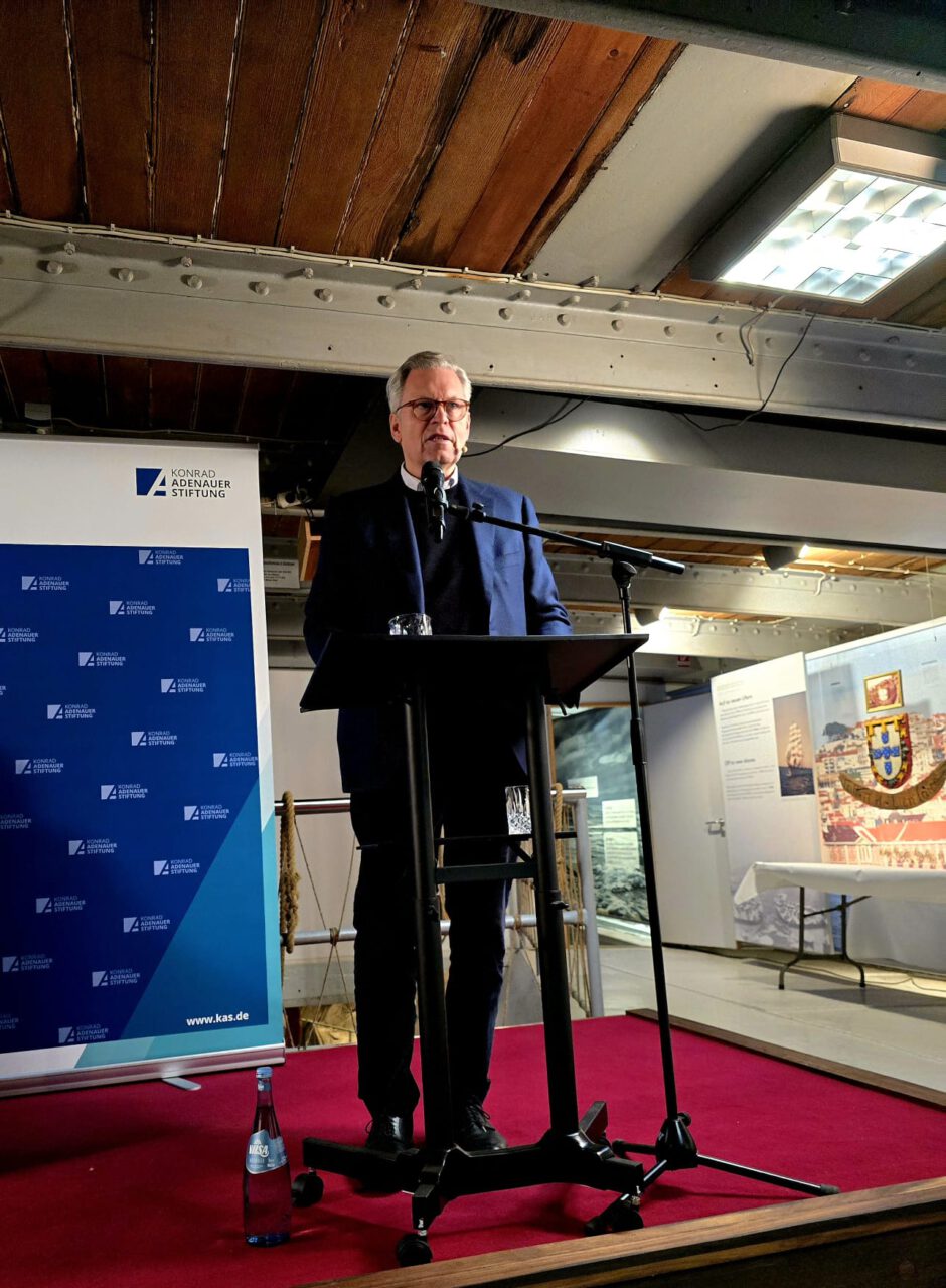 Wie steht es um die Wehrhaftigkeit von Bundeswehr und Gesellschaft? Darum ging es am Mittwoch, 3. Dezember 2025 in Hamburg. Eingeladen hatte die Konrad-Adenauer-Stiftung Hamburg auf das Museumsschiff Rickmer Rickmers in den Hamburger Hafen.